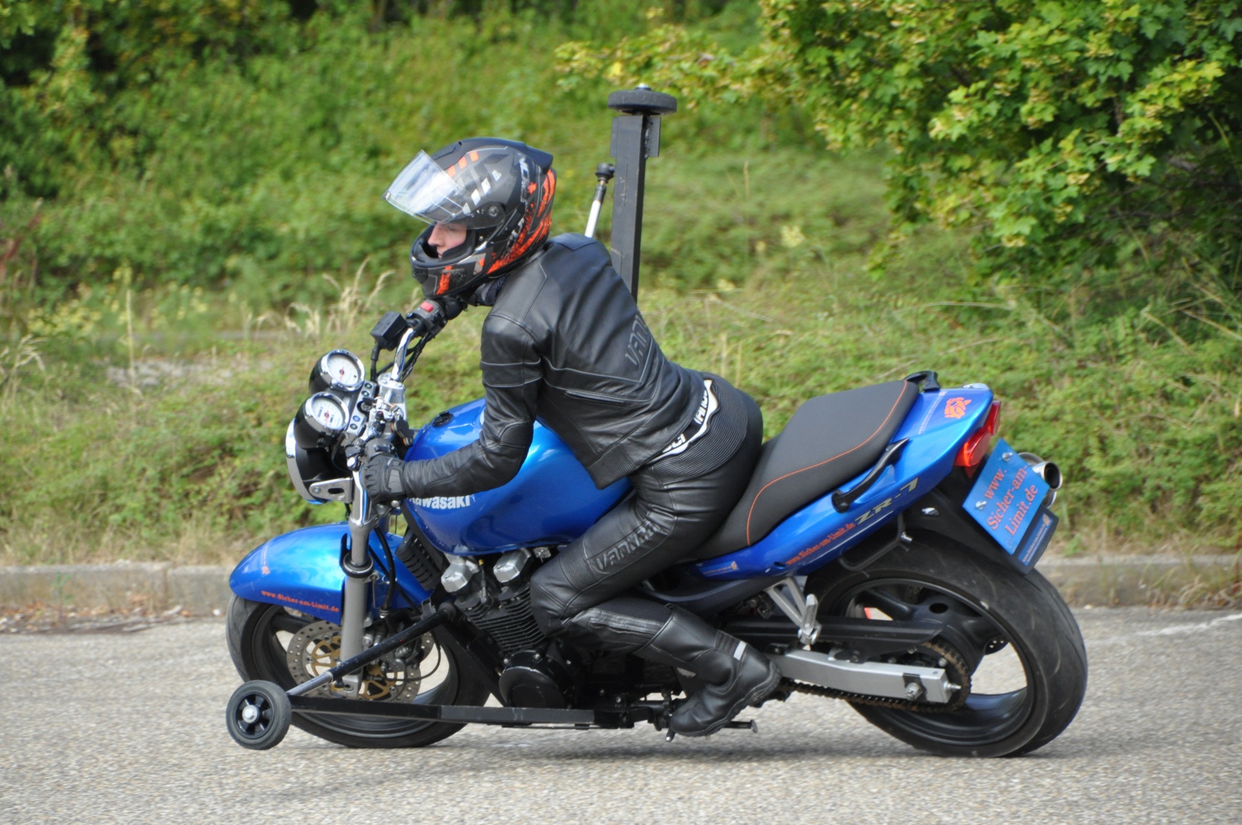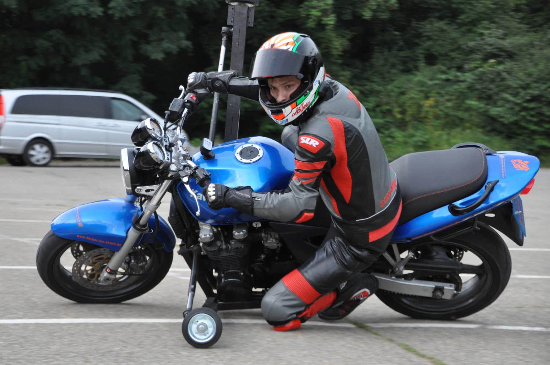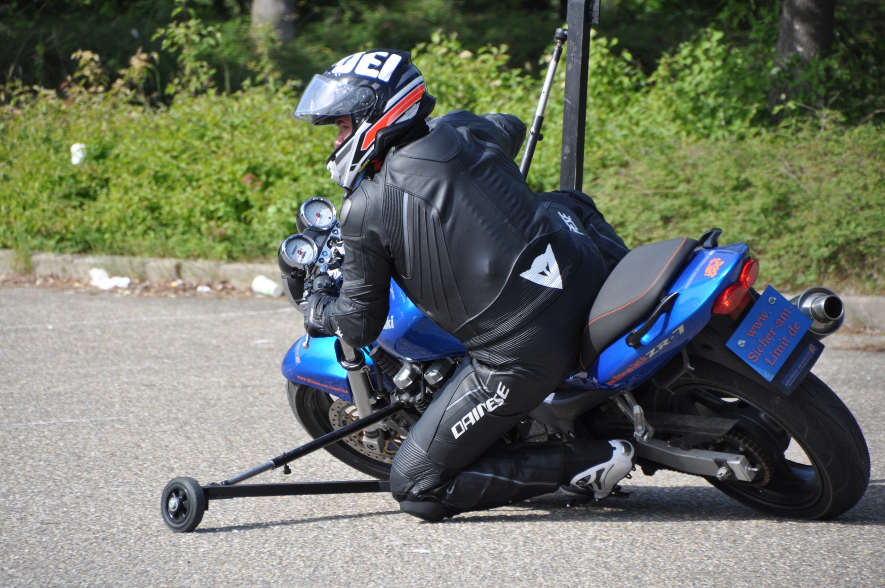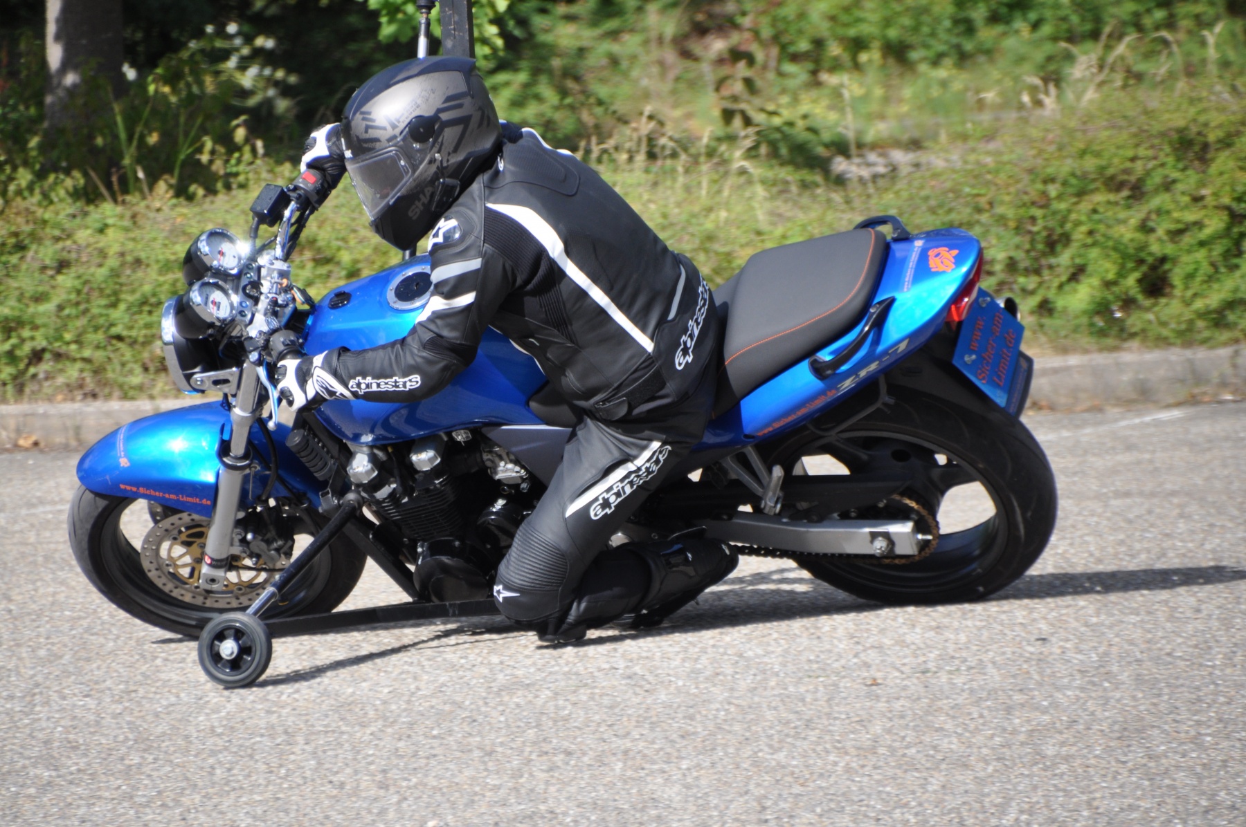 Bei unserem Sicherheits- und Schräglagentraining schulen wir ausschließlich auf unseren speziell umgebauten Trainingsmotorrädern auf einem abgesperrten Gelände. An diesen umgebauten Motorrädern sind zusätzliche, extra leichte Stützen mit Rädern angebracht, diese es erlauben, Schräglagen von ca. 20° bis ca 50° einzustellen und sicher zu fahren. Das Sicherheits- und Schräglagentraining von Sicher-am-Limit ist vor allem auf das Fahren im öffentlichen Straßenverkehr ausgelegt. Durch das Training erfährst du nicht nur theoretisch sondern auch praktisch welche Voraussetzungen nötig sind, um gut und sicher Motorrad zu fahren. Ziel des Trainings ist es, durch weniger Schräglagenangst und bessere Blicktechnik mehr Sicherheit für das Fahren in Schräglage zu gewinnen, wodurch in problematischen Situationen besser reagiert werden kann und Unfälle vermieden werden können.