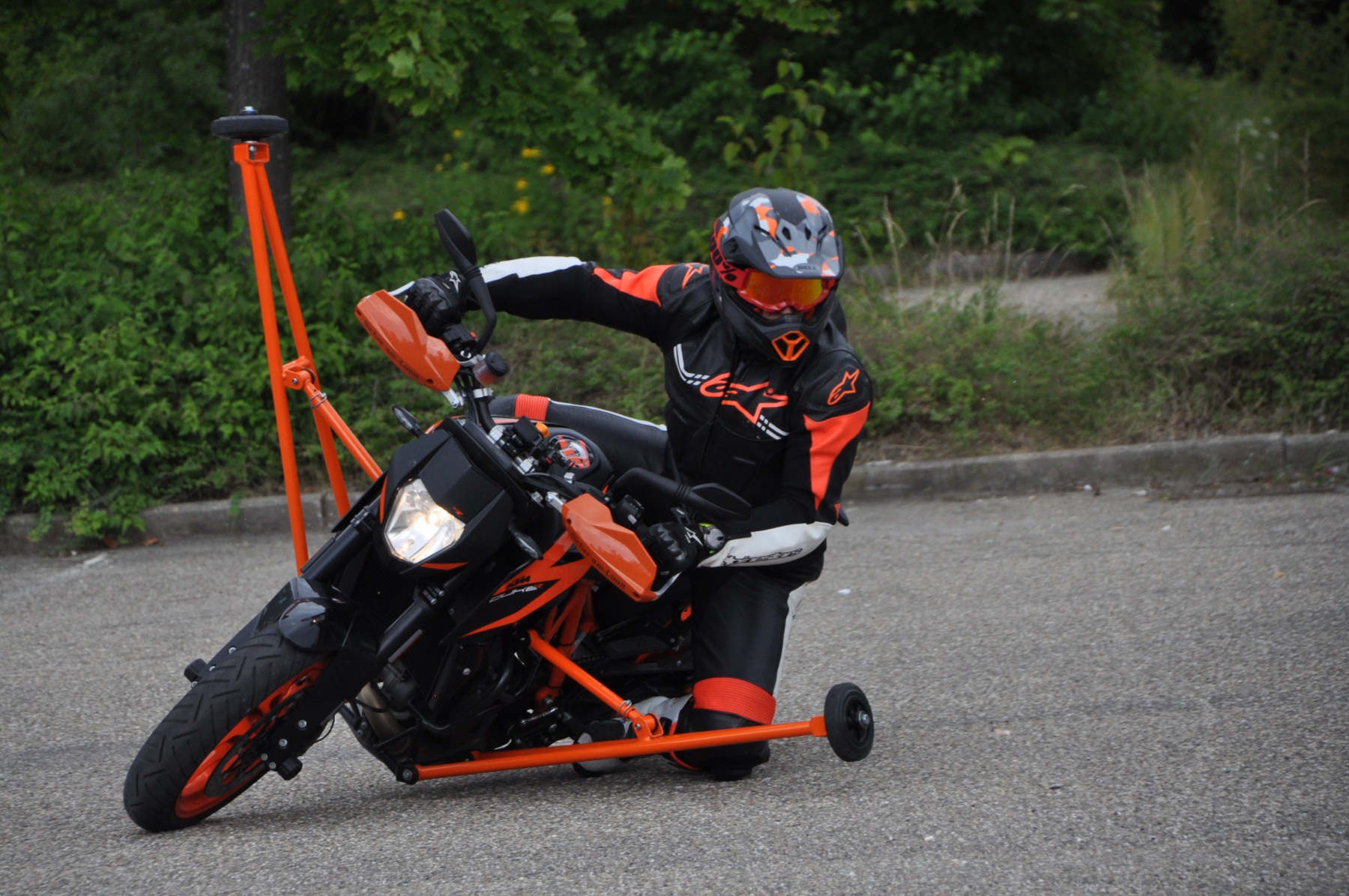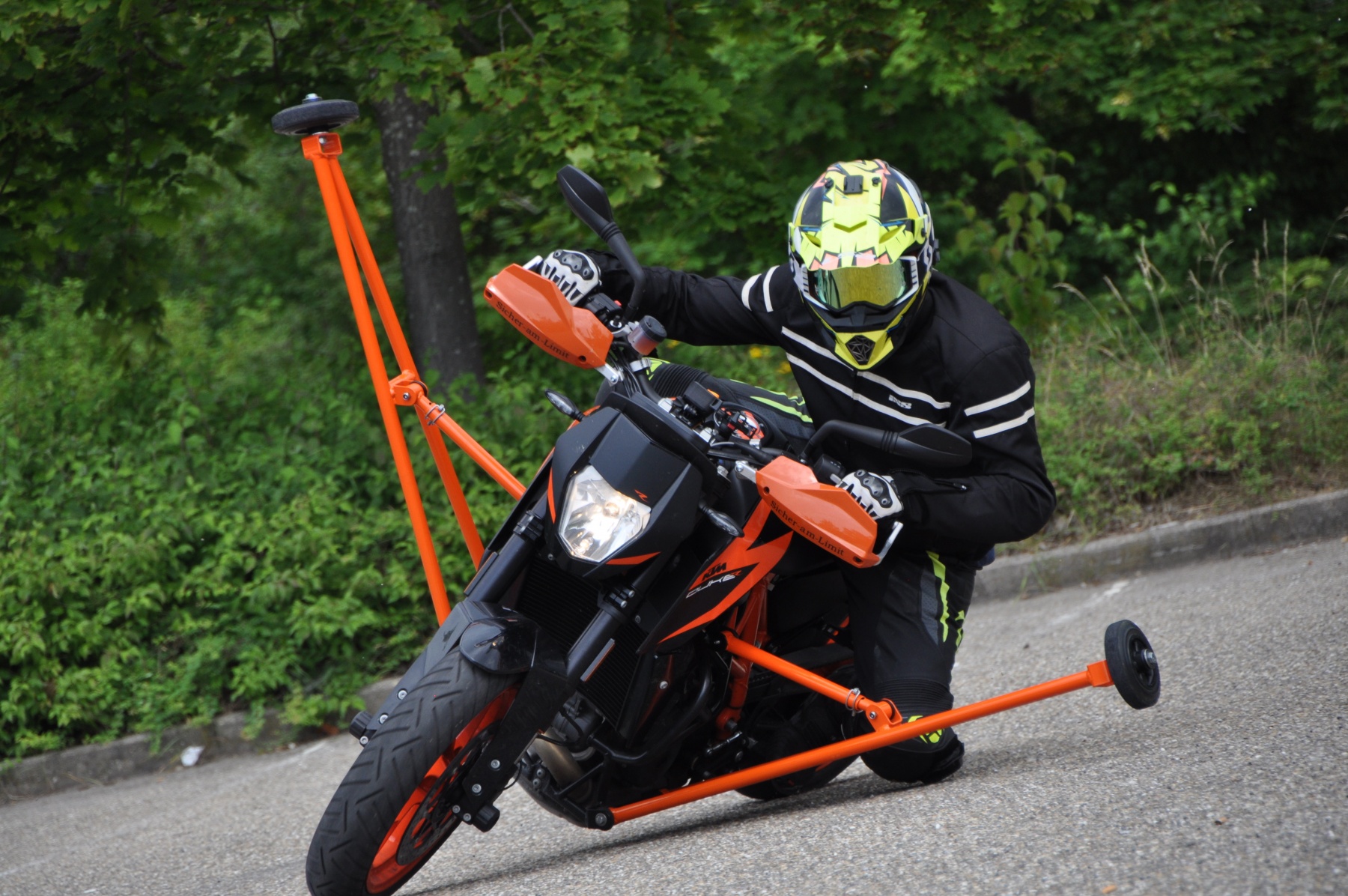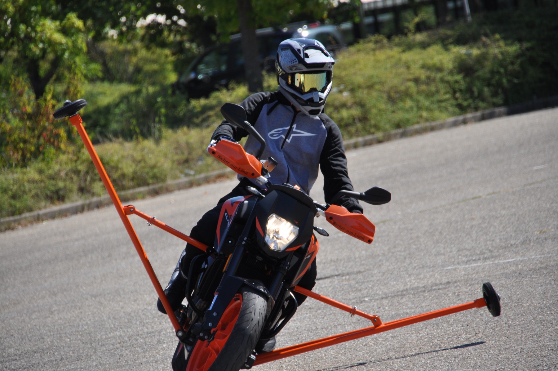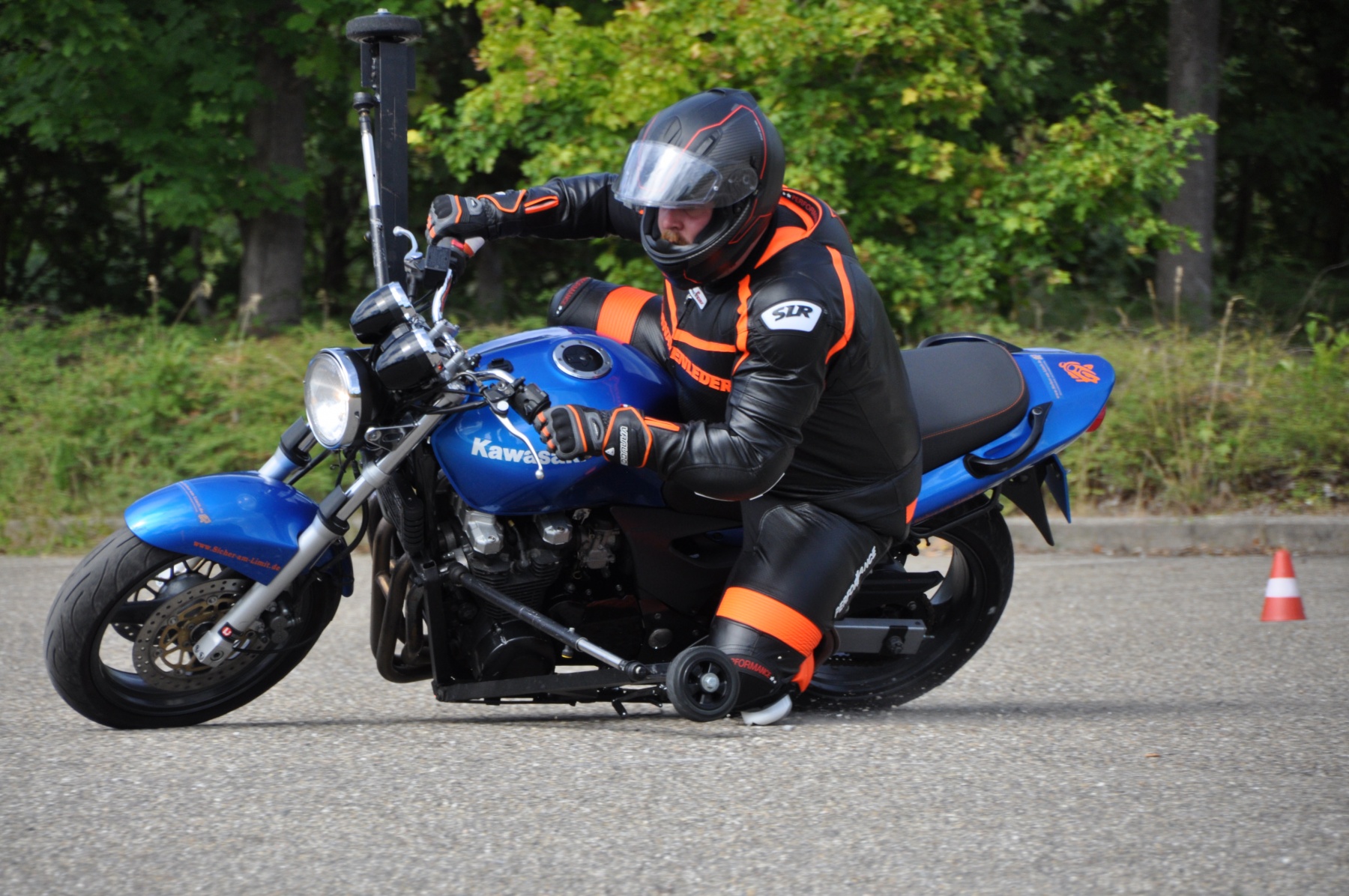 Bei unserem Sicherheits- und Schräglagentraining schulen wir ausschließlich auf unseren speziell umgebauten Trainingsmotorrädern auf einem abgesperrten Gelände. An diesen umgebauten Motorrädern sind zusätzliche, extra leichte Stützen mit Rädern angebracht, diese es erlauben, Schräglagen von ca. 20° bis ca 50° einzustellen und sicher zu fahren. Das Sicherheits- und Schräglagentraining von Sicher-am-Limit ist vor allem auf das Fahren im öffentlichen Straßenverkehr ausgelegt. Durch das Training erfährst du nicht nur theoretisch sondern auch praktisch welche Voraussetzungen nötig sind, um gut und sicher Motorrad zu fahren. Ziel des Trainings ist es, durch weniger Schräglagenangst und bessere Blicktechnik mehr Sicherheit für das Fahren in Schräglage zu gewinnen, wodurch in problematischen Situationen besser reagiert werden kann und Unfälle vermieden werden können.